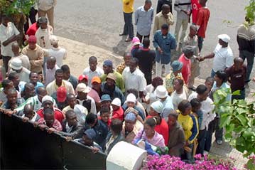 Réfugiés devant le HCR à Rabat (photo UNHCR)
